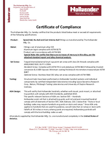 Below is Hollaender’s certificates of compliance for each product group.